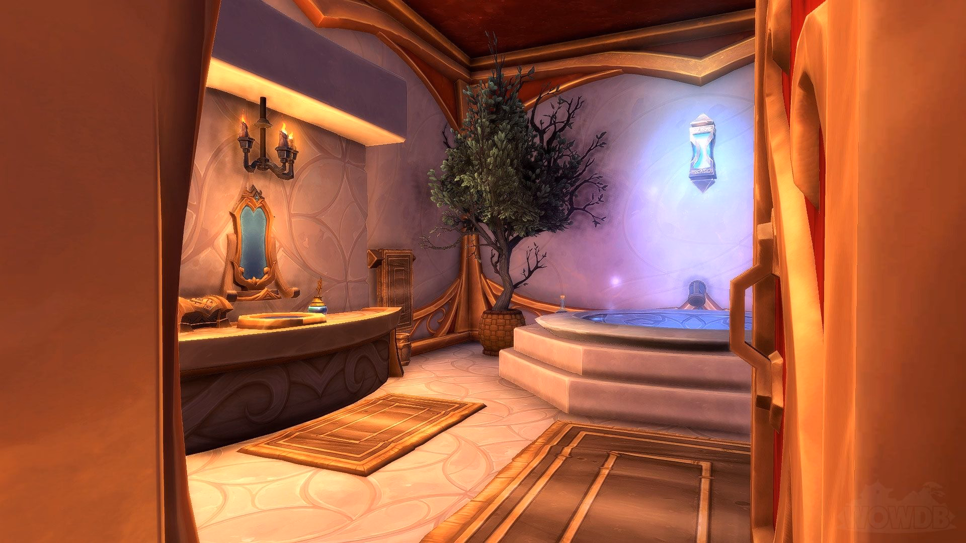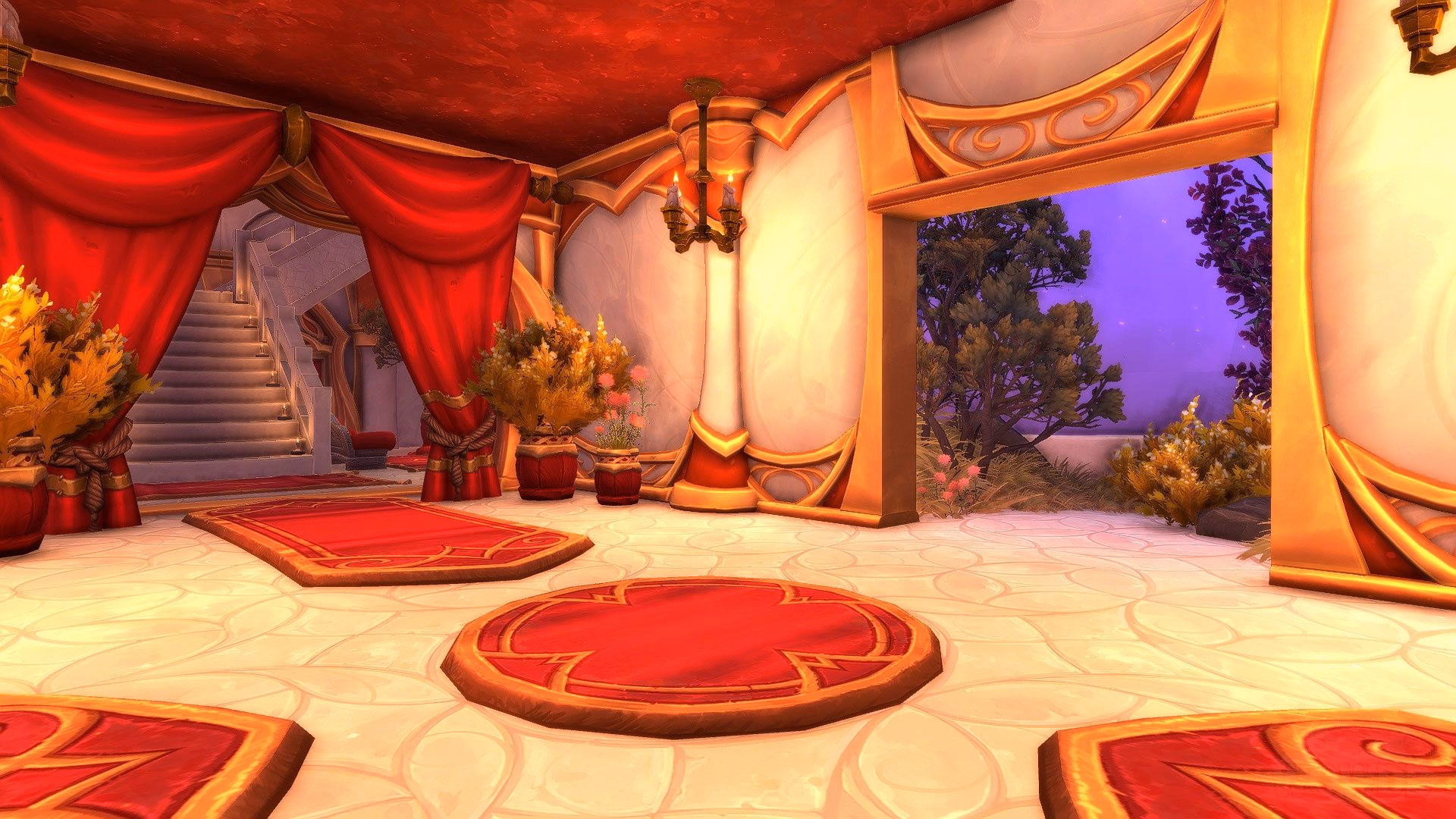 Embrace the regal elegance of the Sin'dorei with this exquisite Blood Elf Mansion. Designed to reflect the majestic architecture of Silvermoon City, this housing layout features rich crimson drapes, golden accents, and enchanted floating crystals. The interior offers a luxurious atmosphere with magical sconces and plush furniture, perfect for any elf seeking a sanctuary that honors their sun-touched heritage.